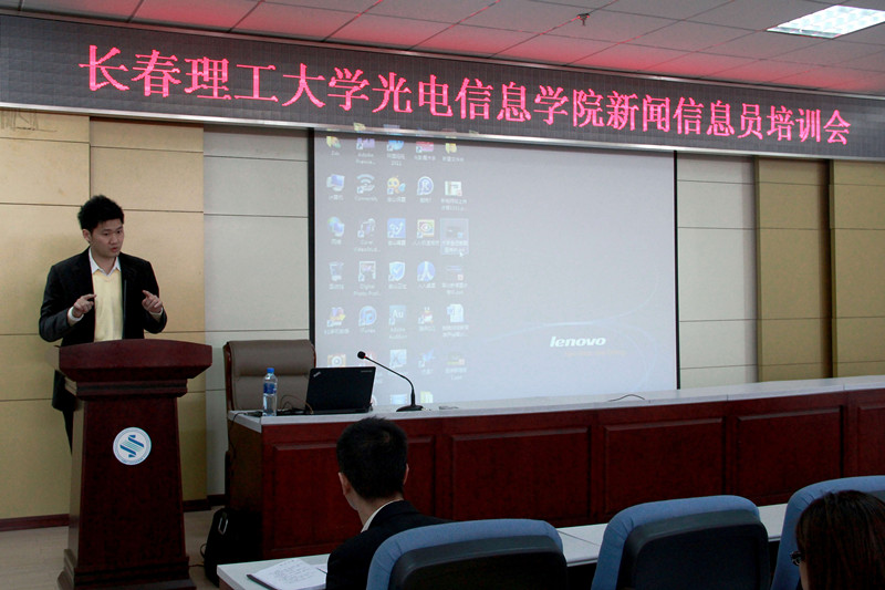 會上,院長辦公室主任助理蔡超老師根據(jù)校園網(wǎng)新增的內(nèi)容向新聞信息員做了介紹,并強調(diào)了新聞信息員的工作職責(zé)。