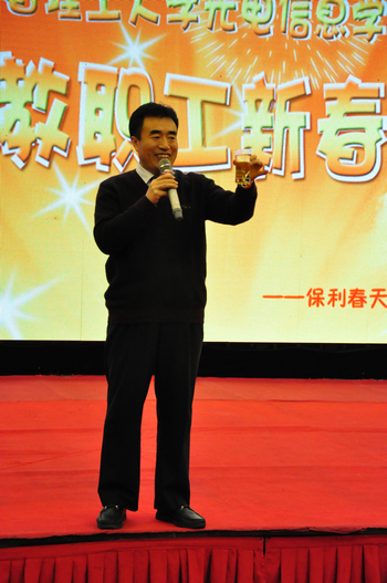 下午4點(diǎn)30分,學(xué)院院長、黨委書記鞠殿民健步登臺,發(fā)表了熱情洋溢的新年祝酒詞,接著,文藝表演在電子工程分院歡快的《恭喜發(fā)財(cái)》小合唱中拉開了序幕。