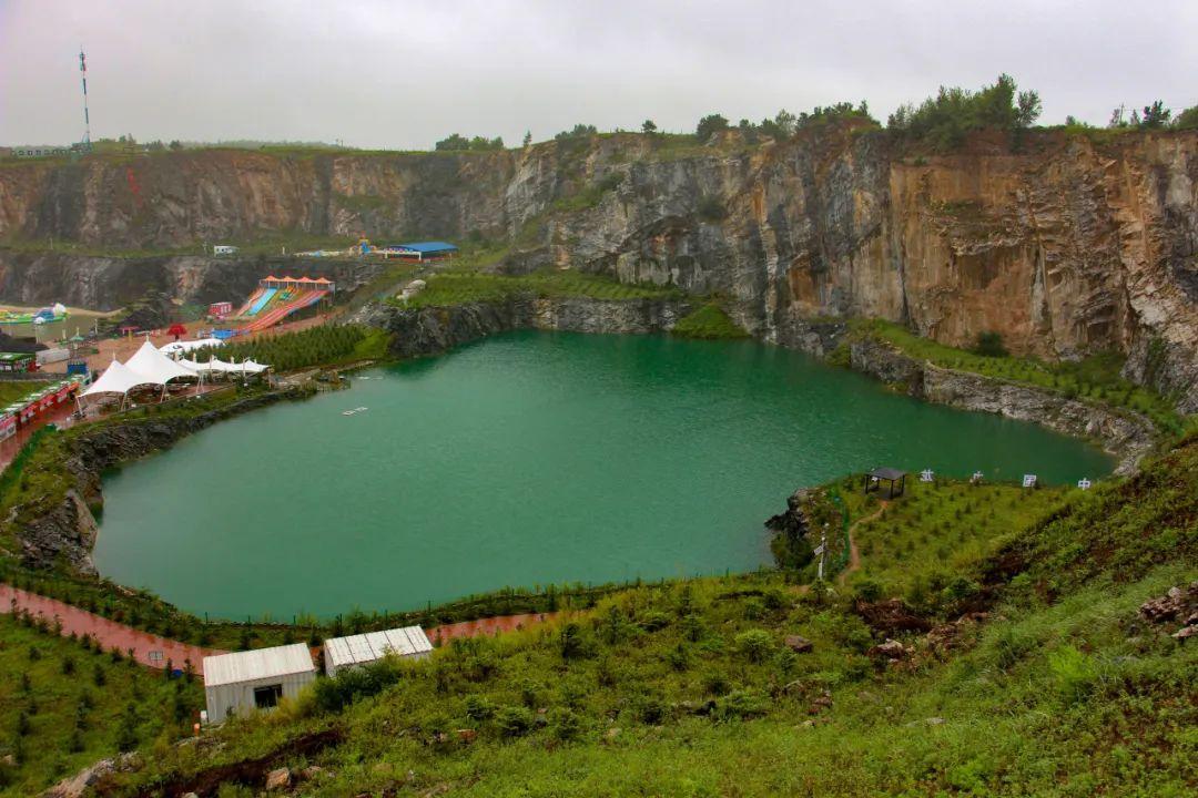 走進(jìn)小天池,湖水清澈見底,沒有濾鏡,不用調(diào)色,小天池本身就已展現(xiàn)出一種攝人心魄的美,甚至讓人忘記幾十年前這里曾是工業(yè)廢棄之地。不同顏色的石灰?guī)r經(jīng)過陽光在水中的反射,展現(xiàn)出不同的顏色。雖然是上世紀(jì)七十年代留下的廢棄礦坑,但是通過環(huán)境的治理,這里儼然已經(jīng)成為人們爭相前往的生態(tài)旅游度假區(qū)。實(shí)踐隊成員們也不禁在此處駐足停留,感受工業(yè)遺留經(jīng)修復(fù)后與自然環(huán)境結(jié)合之美。