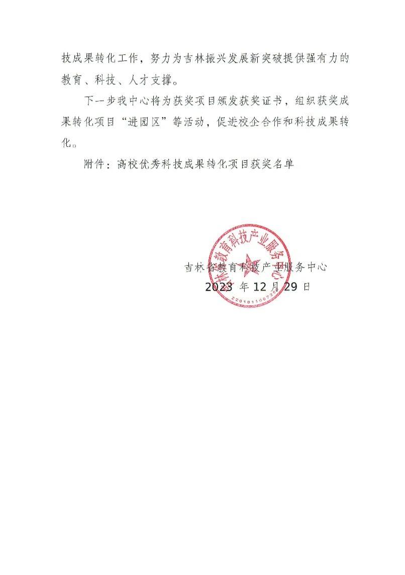 科技成果轉(zhuǎn)化體系對(duì)于高校具有重要意義,可以幫助高校更好地將科技成果轉(zhuǎn)化為產(chǎn)業(yè)應(yīng)用,提高科技創(chuàng)新的效率和成果的使用率程度,促進(jìn)高校的發(fā)展和壯大。同時(shí),科技成果轉(zhuǎn)化體系也是高校吸引人才、提高聲譽(yù)的重要保障。我校將緊密圍繞“率先突破”,強(qiáng)化高??萍紕?chuàng)新賦能產(chǎn)業(yè)創(chuàng)新,深化校企合作和科技成果轉(zhuǎn)化工作,努力為吉林振興發(fā)展新突破提供強(qiáng)有力的教育、科技、人才支撐