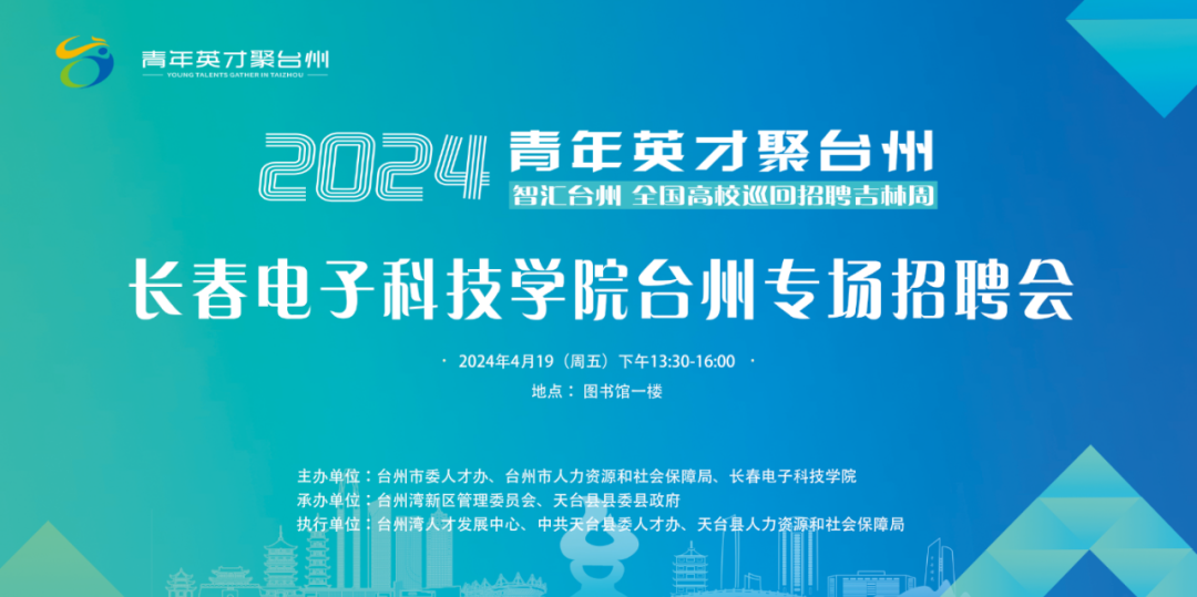 為促進校企交流合作,進一步促成我校學生充分就業(yè),由我校同臺州市委人才辦、臺州市人力資源和社會保障局主辦,臺州灣新區(qū)管理委員會、天臺縣縣委縣政府承辦的2024“智匯臺州·全國高校巡回招聘”吉林周長春電子科技學院專場招聘會啟動啦!