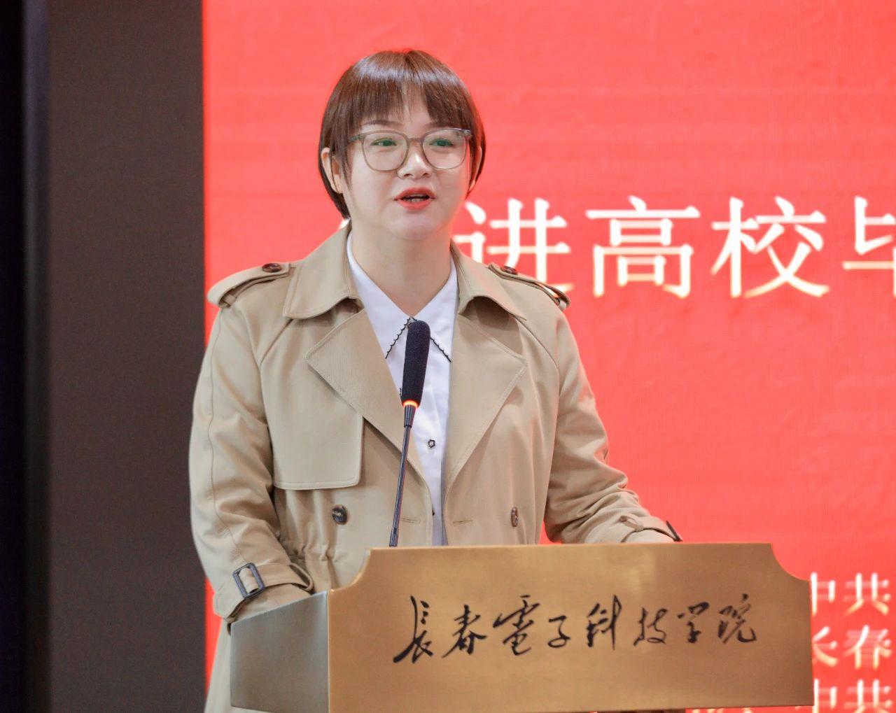 長春電子科技學(xué)院呂傳鈺作為畢業(yè)生代表發(fā)言。當(dāng)面臨就業(yè)抉擇時(shí),他毅然決然地選擇了留省就業(yè),最終有幸在寬城區(qū)吉林正大實(shí)業(yè)有限公司擔(dān)任財(cái)務(wù)會(huì)計(jì)一職,工作中得到了領(lǐng)導(dǎo)和同事的一致好評。他表示,在寬城這片充滿機(jī)遇與挑戰(zhàn)的土地上,能夠?qū)崿F(xiàn)自己的人生價(jià)值,會(huì)以堅(jiān)定的信念和飽滿的熱情投入工作,為寬城的發(fā)展貢獻(xiàn)自己的力量。