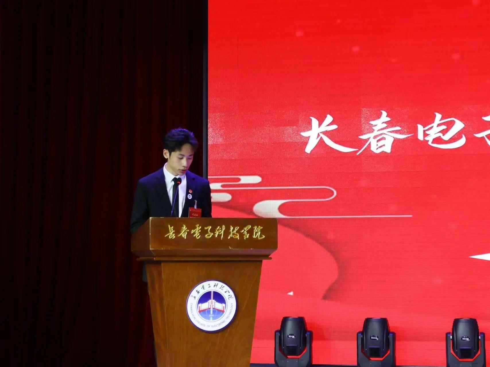 李松峰同學(xué)宣讀《關(guān)于長春電子科技學(xué)院二十四屆學(xué)生會工作報告的決議》
