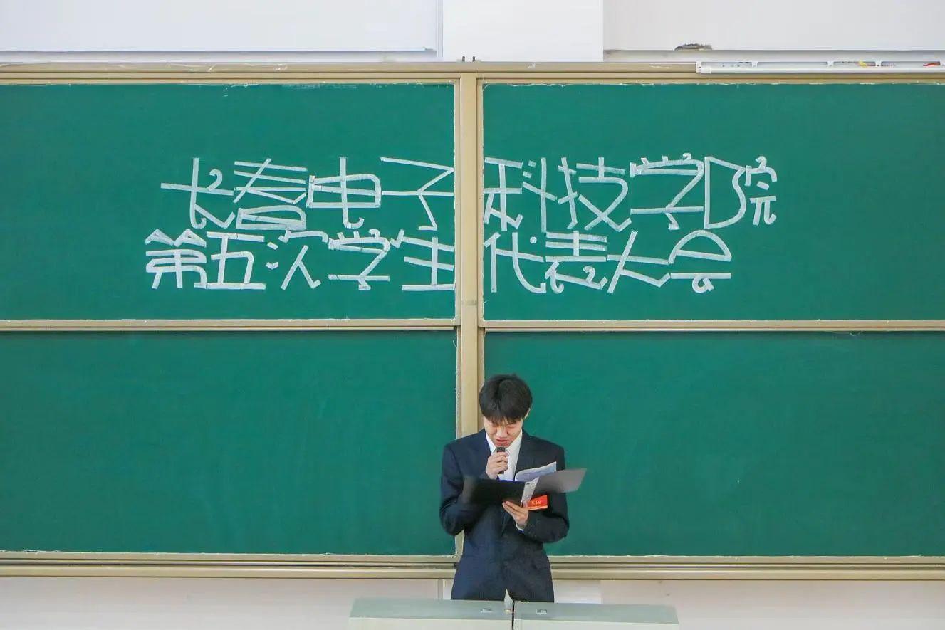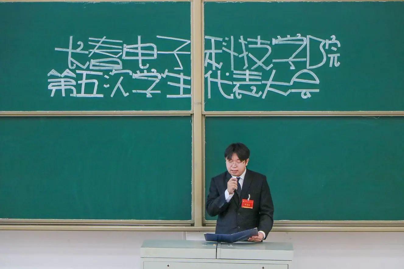 萊源同學(xué)宣讀《長春電子科技學(xué)院第五次學(xué)生代表大會選舉辦法(草案)》