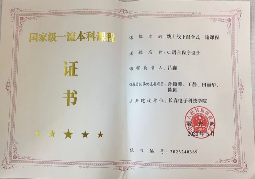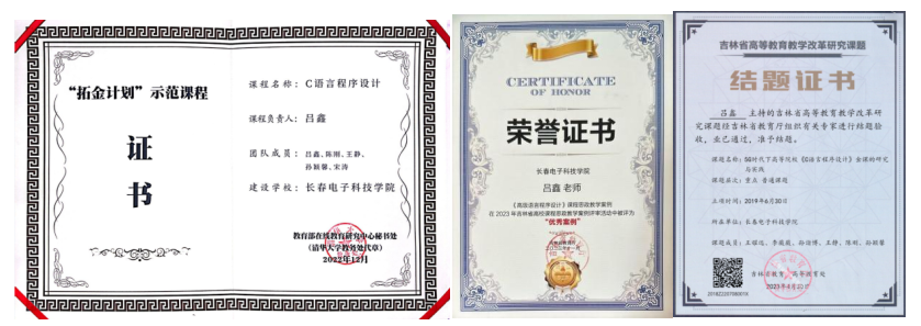 2.2023年1月主講課程《高級語言程序設(shè)計》獲批吉林省高校課程思政教學(xué)優(yōu)秀案例。