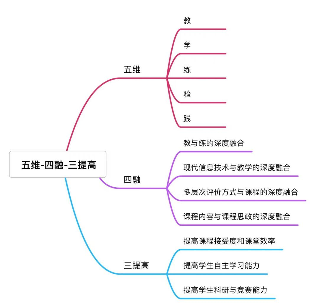 1. 圍繞“教-學(xué)-練-驗-踐”五個維度互相融合,教與學(xué)相長,練與踐互促,提高學(xué)生學(xué)習(xí)能力的同時,為科研和競賽打好基礎(chǔ)。