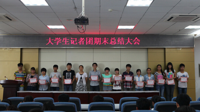 為總結(jié)2012—2013學(xué)年度大學(xué)生記者團(tuán)工作, 同時(shí)對(duì)下學(xué)期的工作進(jìn)行規(guī)劃部署, 7月3日,大學(xué)生記者團(tuán)在主教14樓會(huì)議室召開(kāi)大學(xué)生記者團(tuán)期末總結(jié)大會(huì),參加會(huì)議的有大學(xué)生記者團(tuán)指導(dǎo)教師李琢以及記者團(tuán)全體成員,蔣力奔副團(tuán)長(zhǎng)負(fù)責(zé)大會(huì)主持工作。