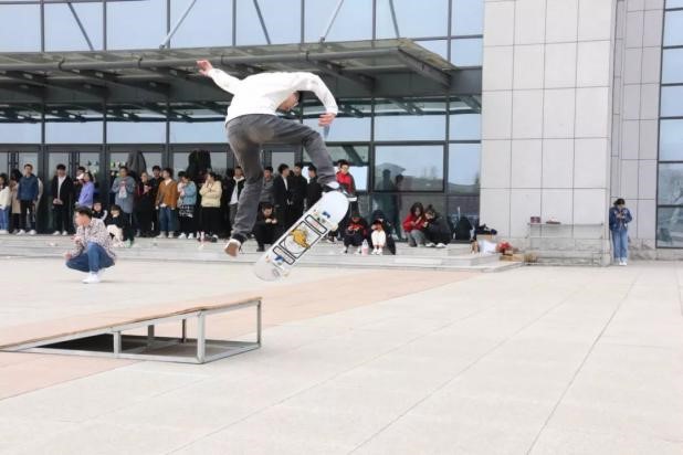 4月20日下午2:30,校團(tuán)委社團(tuán)聯(lián)合會BMD滑板社在主教樓前廣場舉辦了第二屆“希望的田野”滑板趣味賽。出席本次活動的嘉賓有:校團(tuán)委社團(tuán)聯(lián)合會主席團(tuán)、校團(tuán)委社團(tuán)聯(lián)合會各部門成員、校團(tuán)委社團(tuán)聯(lián)合會BMD滑板社成員以及城建參賽代表隊。