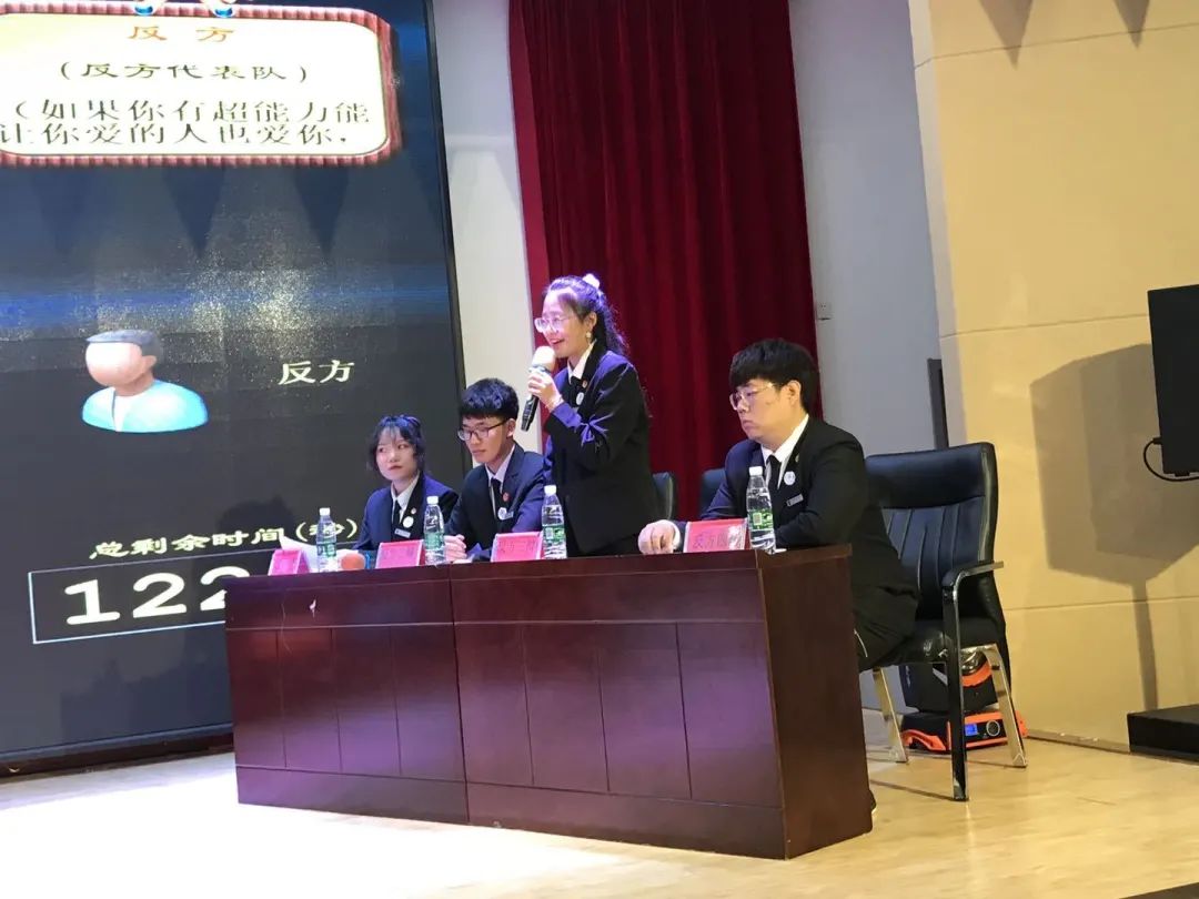 在自由辯環(huán)節(jié),雙方進(jìn)行了激烈交鋒。雙方辯論代表在辯論過(guò)程中,都抓住了主要的問(wèn)題,圍繞對(duì)方的立場(chǎng)和論據(jù)展開(kāi)論辯。首先,反方提出了超能力產(chǎn)生的消極影響,雙方就此展開(kāi)激烈的討論。隨后,雙方轉(zhuǎn)向了“使用超能力的意義”的話題,正方借此指出反方觀點(diǎn)的漏洞。雙方有來(lái)有去、快言快語(yǔ),將比賽推進(jìn)了一個(gè)小高潮。辯手們觀點(diǎn)鮮明、論證充分,反應(yīng)靈敏、回?fù)粲辛?,也為大家?guī)?lái)了一場(chǎng)立場(chǎng)鮮明的聽(tīng)覺(jué)盛宴。