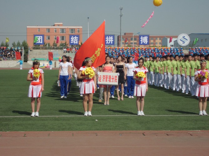 我們經(jīng)濟管理分院出場順序比較靠后,雖然在炎炎烈日下暴曬又等待時間較長,但是在上場的時候,同學(xué)們沒有露出一絲疲困的神情,依然步伐矯健、精神抖擻。我們經(jīng)管分院是一個奮發(fā)向上、充滿朝氣的集體,堅定的目光代表我們執(zhí)著的追求,沸騰的熱血證明我們必勝的決心,這一切仿佛在向你我莊嚴(yán)的宣告:經(jīng)濟管理分院將是本界運動會上最亮麗的風(fēng)景線。