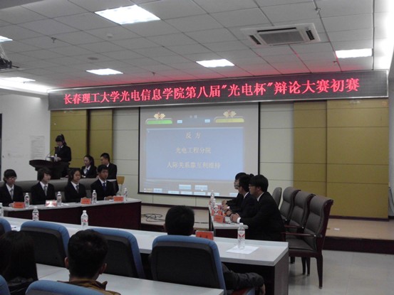 比賽進(jìn)行過(guò)程中,八位辯手妙語(yǔ)連連,結(jié)合理論與現(xiàn)實(shí)充分論證了己方觀點(diǎn),雙方針鋒相對(duì)互不相讓,為大家奉獻(xiàn)了一場(chǎng)有理有據(jù)的精彩辯論。經(jīng)過(guò)立論陳詞、攻辯階段、攻辯小結(jié)、自由辯和總結(jié)陳詞五個(gè)環(huán)節(jié)環(huán)環(huán)緊扣的激戰(zhàn),最終光電工程分院以總分第一的成績(jī)獲得冠軍。在攻辯環(huán)節(jié)中,雙方更是爭(zhēng)鋒相對(duì)、步步緊逼,現(xiàn)場(chǎng)氣氛迅速升溫,達(dá)到白熱化階段。繼短暫而精彩的觀眾提問(wèn)環(huán)節(jié)后,比賽進(jìn)入總結(jié)陳詞環(huán)節(jié)。正反雙方辯手清晰的思路和巧妙的陳詞給觀眾留下了深刻印象。