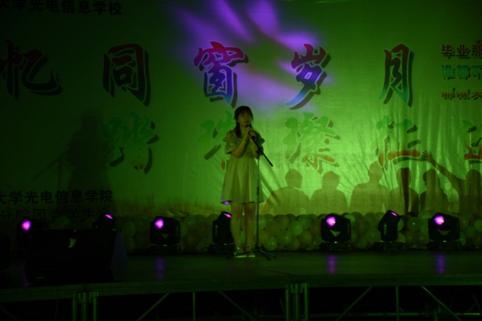 晚會在伴隨著同學們鏗鏘有力的聲音以一首詩朗誦《今雖離別,此情珍重》下將晚會正式拉開了序幕,在同學們 青春飛揚的《have dancers》舞蹈中將晚會的氣氛帶動了起來,一首《追夢赤子心》唱出了畢業(yè)學子的心聲,感動了在場的觀眾,一部《同桌的你》舞臺劇展現(xiàn)了大學生活的點點滴滴,讓在場的畢業(yè)生只恨時光太匆匆...