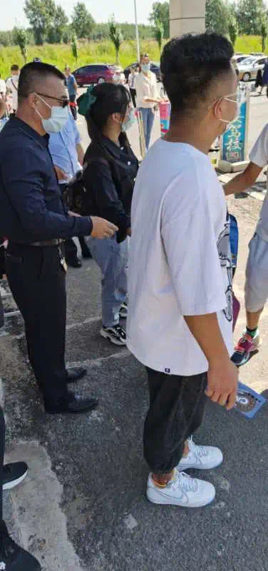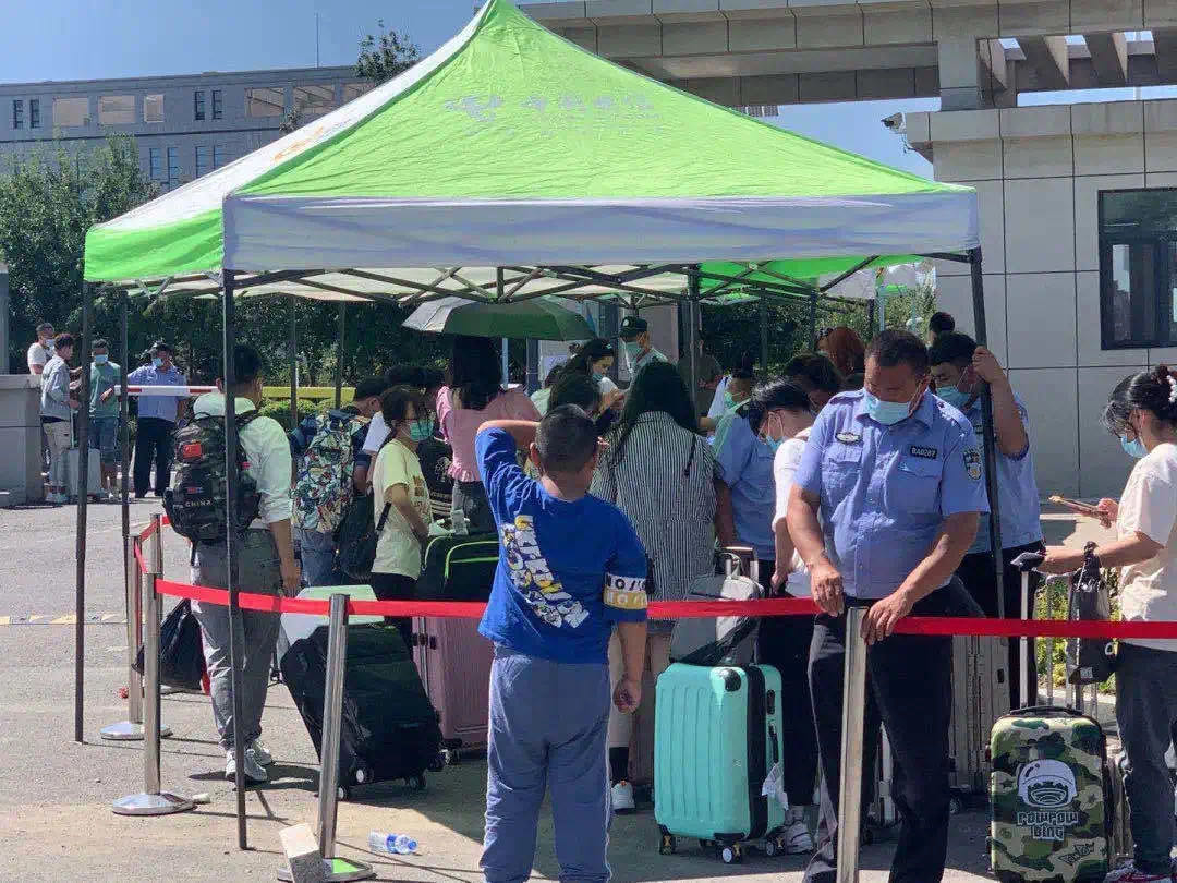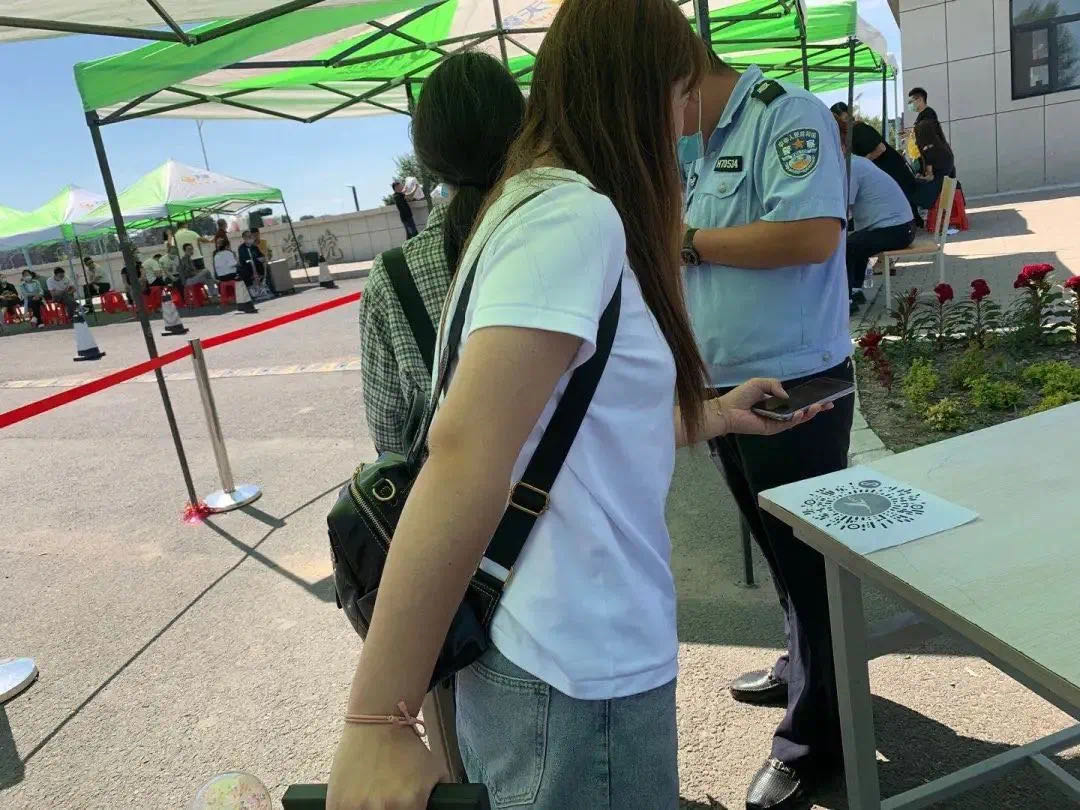 艷陽下,同學(xué)們陸續(xù)回歸校園,有序排起長隊等待各項檢查合格。