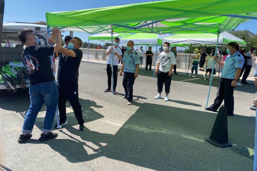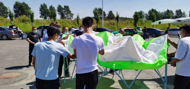 02為送行家長們準(zhǔn)備遮陽棚