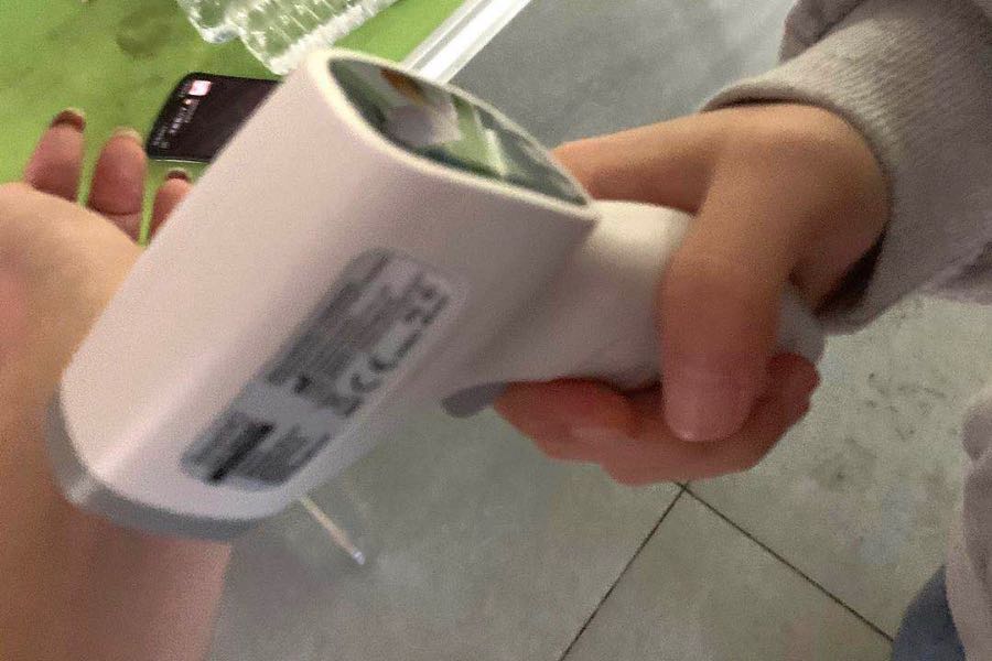 最后進(jìn)行體溫監(jiān)測,體溫正常的同學(xué)有序進(jìn)入校園。