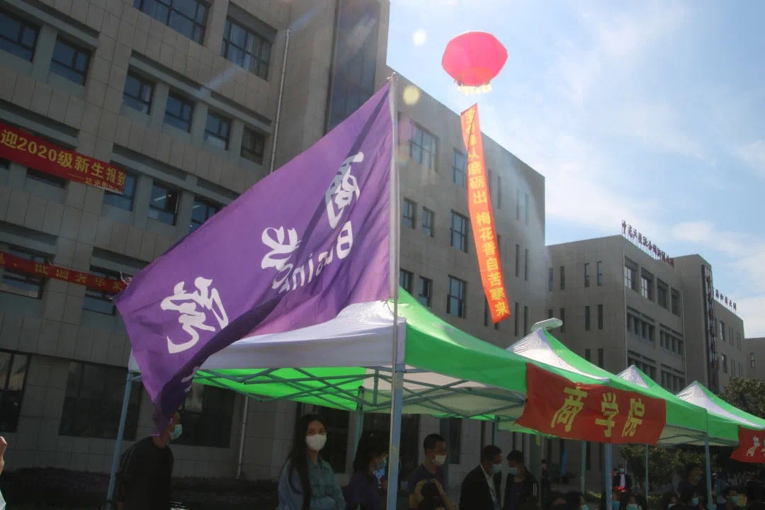 旭日朝陽迎新生,商學院的學長學姐們迎著晨曦,早早開始準備迎接2020級新生的到來。