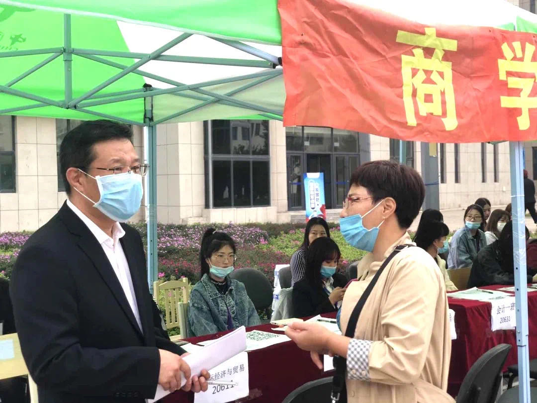 商學院院長耿鋼教授與各專業(yè)輔導員們來到迎新現(xiàn)場關心新生入學進程,積極調(diào)動迎新志愿者們的工作熱情,保證迎新工作的順利進行。