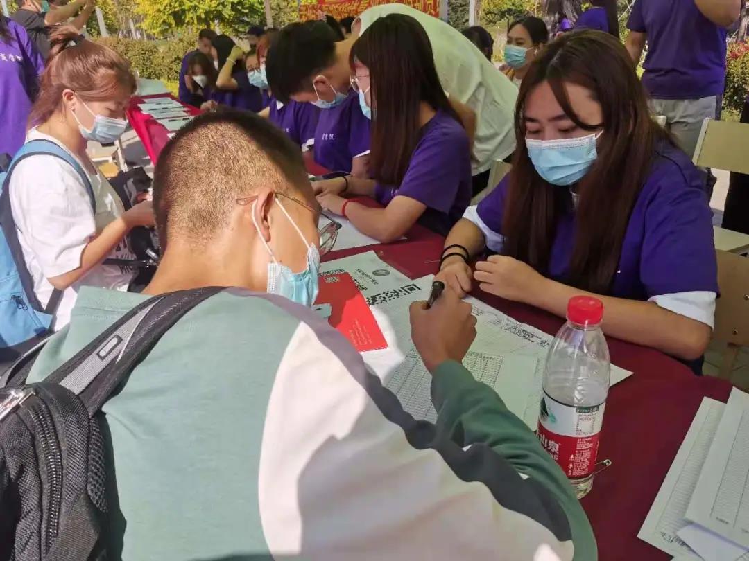 商學(xué)院的學(xué)長學(xué)姐們,早早地來到了新生接待處,為迎接21級新生進(jìn)行著緊張的工作準(zhǔn)備。每個(gè)人都洋溢著熱情的笑臉,迎接每一位新生的到來。院學(xué)生會志愿者們在接待處耐心地接受家長和新同學(xué)的咨詢,為學(xué)弟學(xué)妹辦理手續(xù),帶領(lǐng)新生有條不紊地領(lǐng)取軍訓(xùn)裝備和行李,以及入住宿舍等相關(guān)工作。