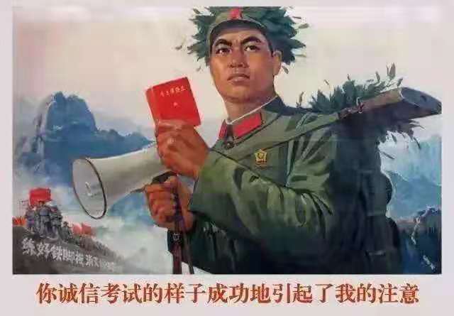 以誠信的態(tài)度對待每一場考試,考出真實(shí)水平。嚴(yán)格遵守考試規(guī)章制度,實(shí)事求是,杜絕一切考試違紀(jì)和作弊形式。