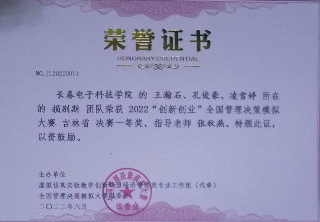 在全國總決賽獲獎的同時,還有許多優(yōu)秀的同學也在吉林省商道比賽中獲得了優(yōu)異的成績。